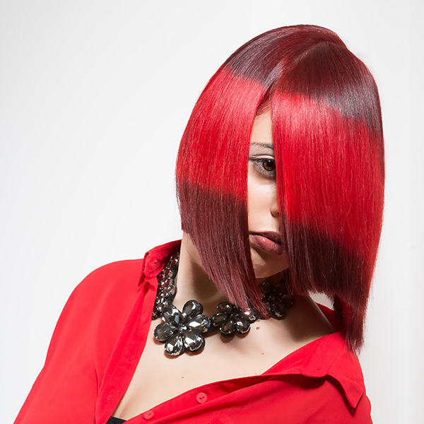La personalità classica, elegante, giovane, stravagante della nostra cliente viene sottolineata dal taglio dell'acconciatura.
